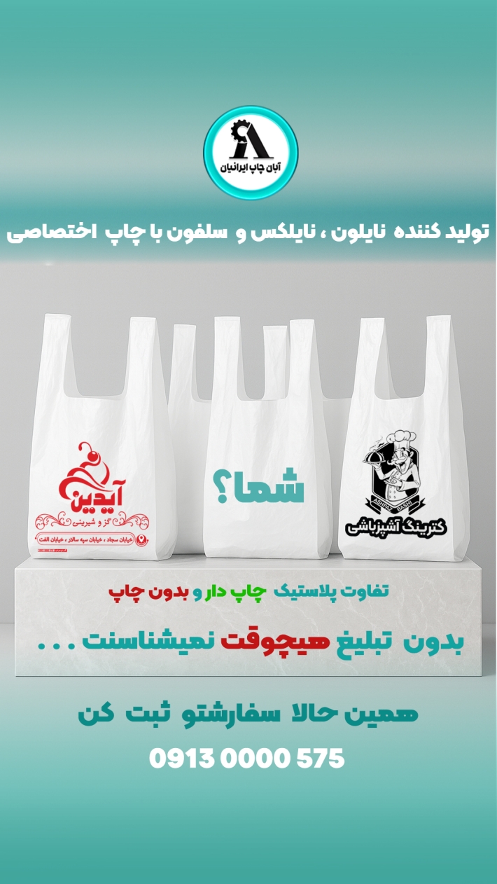 آبان چاپ تولیدکننده انواع نایلون و نایلکس دستهدار با چاپ اختصاصی، مناسب تمامی صنوف.
