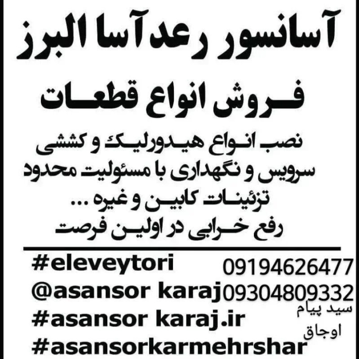 ✨✅آسانسور رعدآسافرازان البرز✅✨
