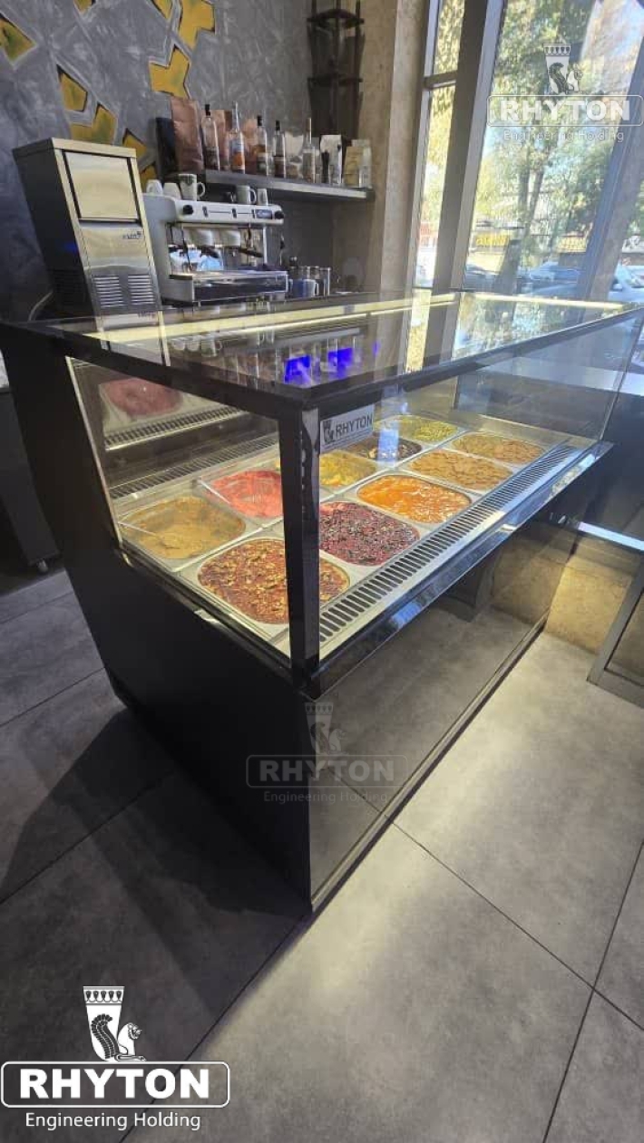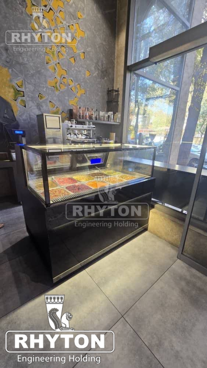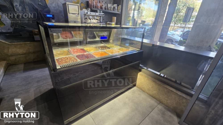 تاپینگ دسر RHYTON برای سرو حرفه‌ای و نمایش جذاب دسرها؛ سرمایش یکنواخت، مصرف بهینه انرژی و طراحی صنعتی برای قنادی‌ها و کافه‌ها.