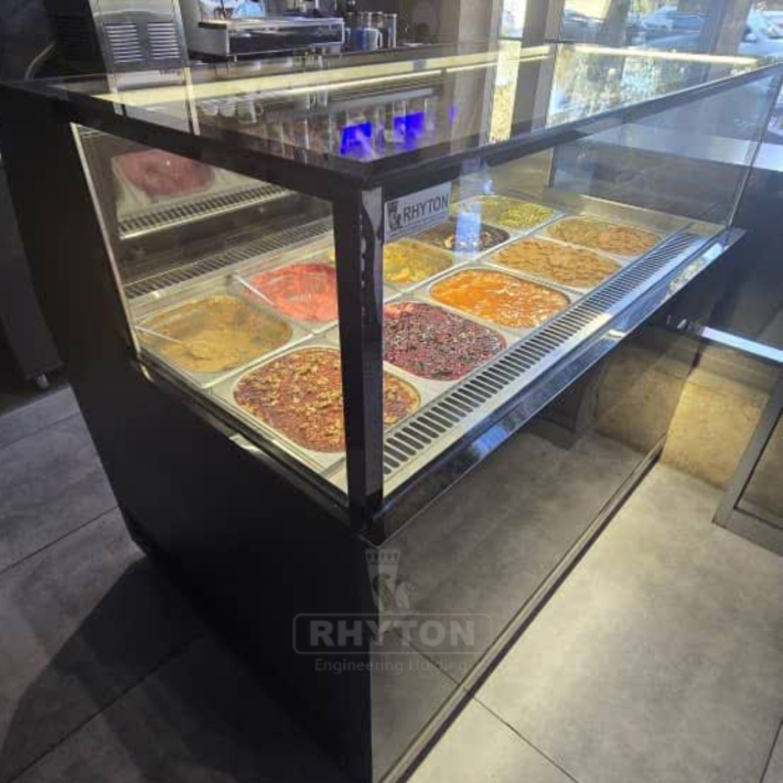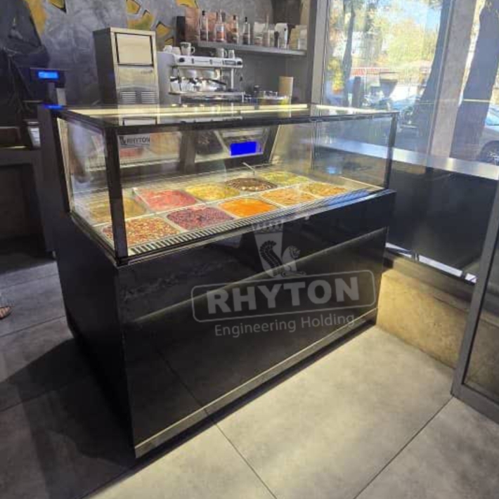 تاپینگ دسر RHYTON برای سرو حرفهای و نمایش جذاب دسرها؛ سرمایش یکنواخت، مصرف بهینه انرژی و طراحی صنعتی برای قنادیها و کافهها.