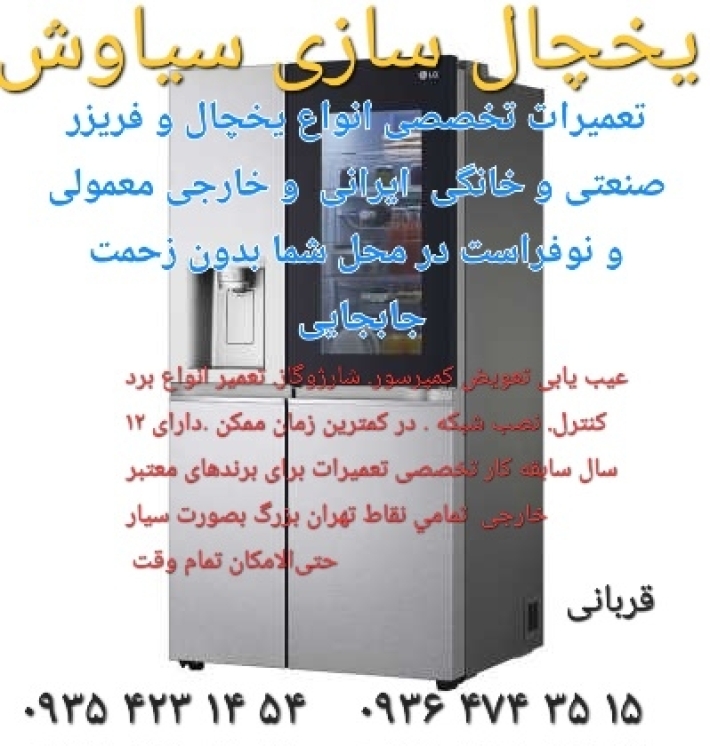 تعمیرات تخصصی انواع یخچال و فریزر صنعتی و خانگی در منزل و یا محل کار شما بدون جابجایی