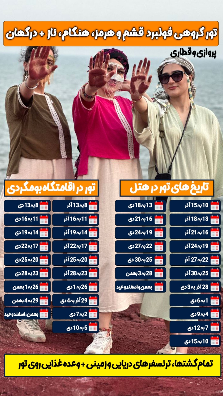 ▫️قشم(دره ستارگان، چاهکوه، جنگل حرا با لنچ و موزیک)