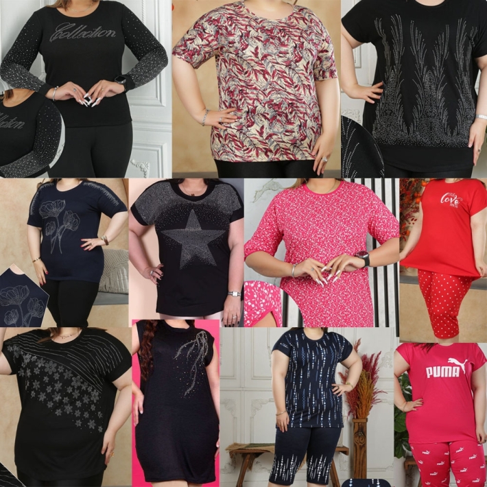 تولیدی تیشرت - زیرسارافون - کیمونو - تاپ شلوارک - شلوار زنانه با کیفیت تضمینی و قیمت رقابتی. جنس پارچه کارهامون ویسکوز 100% می باشند. سایز 42 تا 56