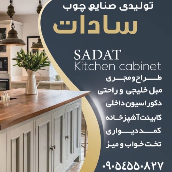 تولیدی صنایع چوب سادات ، انواع کابینت آشپزخانه ، سرویس خواب ، مبل خلیجی وراحتی ، میز ، کمد دیواری و...