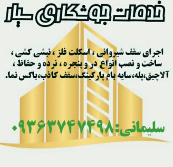 اجرای سقف شیروانی اسکلت فلزی ساخت و نصب انواع درب و پنجره نرده و حفاظ آلاچیق پله سر در ورودی باکس نما صفر تا صد جوشکاری ساختمان پذیرفته میشود با کادری مجرب زیر نظر مهندس ناظر