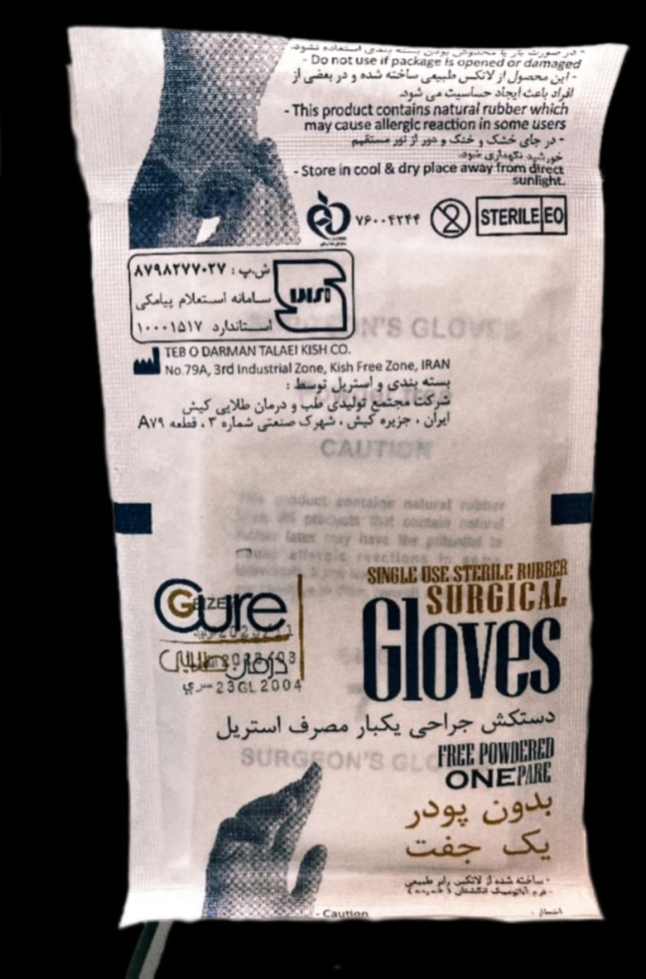 دستکش جراحی یکبار مصرف استریل بدون پودر.* برند درمان طلایی