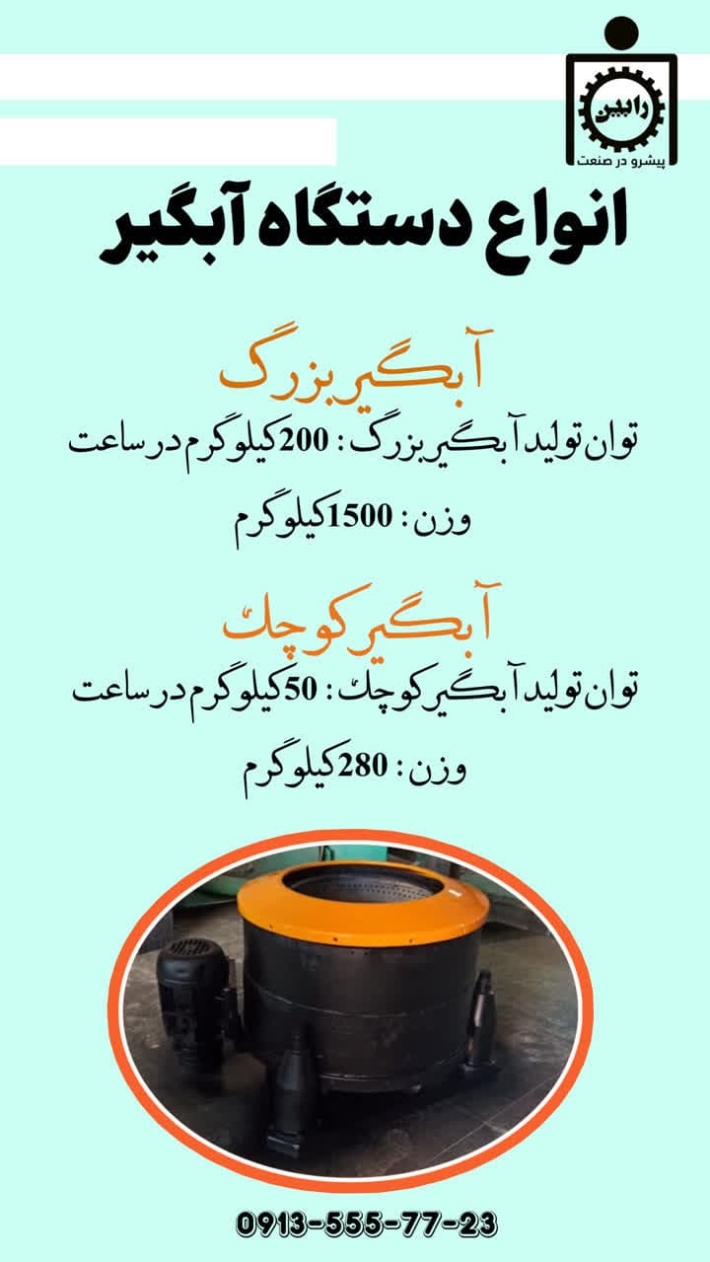 توان تولید آبگیر بزرگ : 200 کیلو گرم در ساعت
