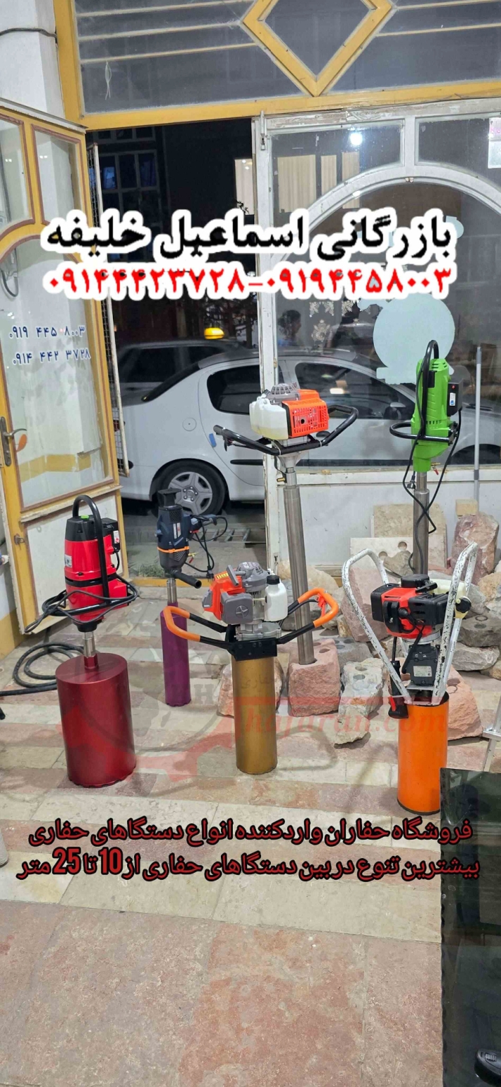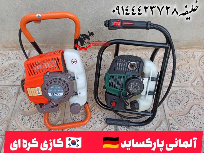 دستگاه حفاری برقی بیصدا و بنزینی کمصدا برای حفاری انواع سنگ، ساروج، خاک و بتن مخصوص سوراخکاری دفینه از عمق 5 تا 25 متر و قابل استفاده برای رد کردن دوربین شلنگی.