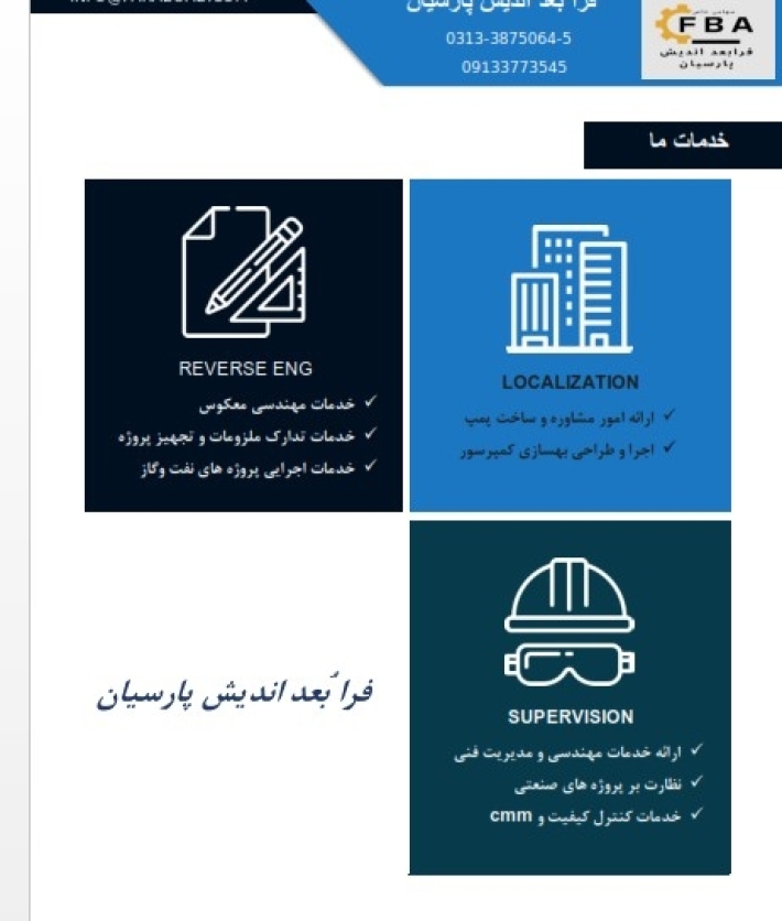 مهندسی معکوس و ساخت قطعات دوار و ثابت تجهیزات نفت و گاز و پتروشیمی. یدکی کمپرسورها، پمپ ها ،انواع ولوها و مکانیکال سیل، با رعایت دقیق استانداردهای بینالمللی.