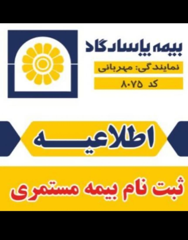 لازم به ذکر است برای بهره مندی از پوششها و مزایای فوق الذکر نیازی به پرداخت وجه اضافی نیست. نماینده بیمه پاسارگاد: خانم مهربانی کد 8075