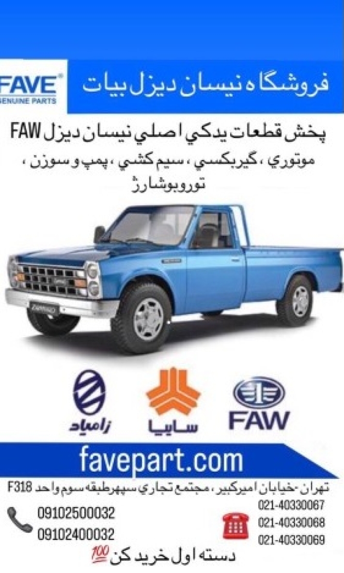 تهران خیابان امیر کبیر بین کوچه اوحدی و اشرقی پاساژ سپهر طبقه سوم پلاک F318 فروشگاه نیسان دیزل بیات FAW فاوه پارت