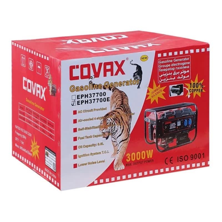 موتور برق 3 کیلوات استارتی که مشاهده میکنید یکی از موتور برق های پر قدرت و با کیفیت از تولیدات شرکت کوواکس می باشد این موتور برق دارای قدرت موتور 7 اسب بخار می باشد که توان تولید 3000 وات را دارد سیم پیچی این محصول تماما مسی می باشد و همچنین دارای مخزن بنزین 15 لیتری است که با استفاده از این سوخت جریان برق را تولید میکند و موتور آن چهار زمانه است با استفاده از این دستگاه میتوانید برق AC مورد نیاز دستگاه های برقی خود را تولید کنید این دستگاه برق تولید شده AC را از طریق 2 پریز خروجی به شما انتقال میدهدو همچنین برق AC خروجی آن دارای 13 امپر هست.وخروجی DC 12 ولت دارد و شدت جریان ان 8.3 امپر است.