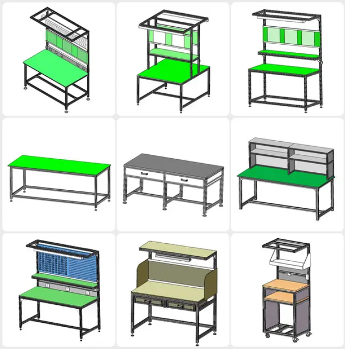 2. میزهای مونتاژ با کشو/رف (Assembly Benches with Drawers/Shelves)