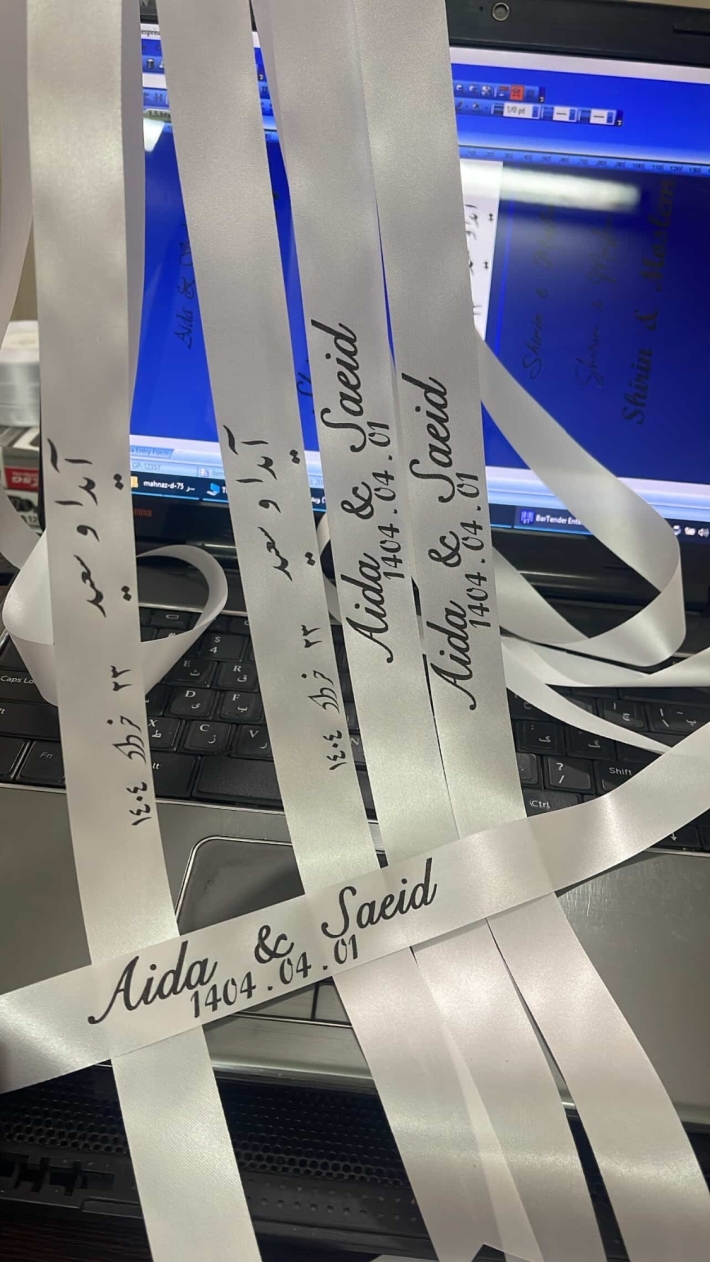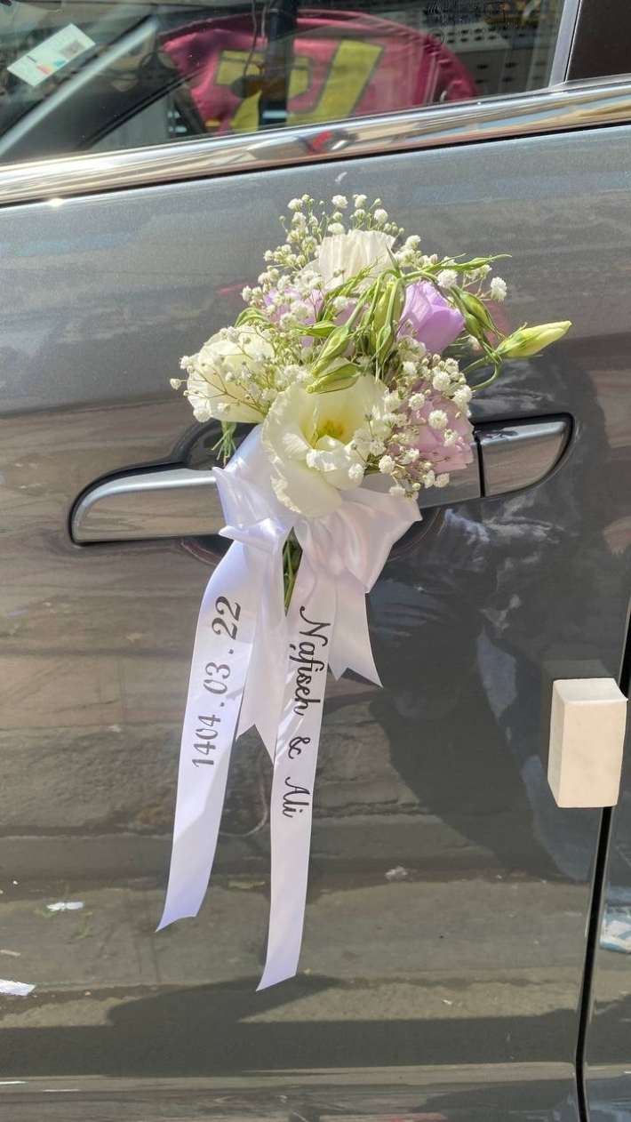 چاپ ربان دسته گل عروس و ماشین عروس به اسم عروس داماد