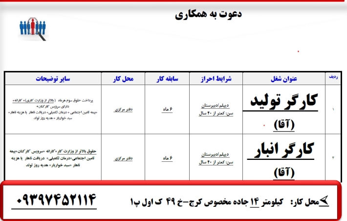کارگر تولید (آقا) نیازمندیدم