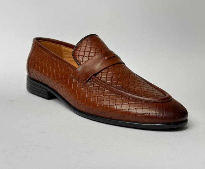 کفش چرم طبیعی کالج طرح حصیری مدل 1128