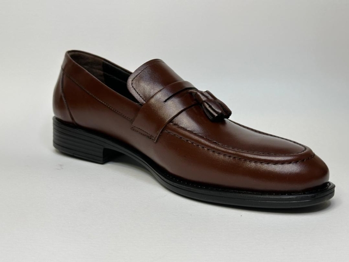 کفش کالج مردانه چرم طبیعی با طراحی کلاسیک منگوله دار بی بند انتخابی هوشمندانه برای آقایانی است که با به استایل رسمی ,نیمه رسمی یا حتی کژوال شیک اهمیت می دهند. این کفش با رنگ قهوه ای تیره و رویه ای از چرم براق طبیعی , ظاهری لوکس وشیک دارد و به راحتی با انواع لباس ها مانند شلوار پارچه ای, جین یا کت شلوار ست می شود. با این کفش شیک پوشی رو از قدم اول شروع کن! طراحی منگوله دار,چرم طبیعی براق وراحتی بینظیر انتخابی خاص برای آقایان با سلیقه مناسب قرارهای کاری, مهمانی واستایل روزمره.