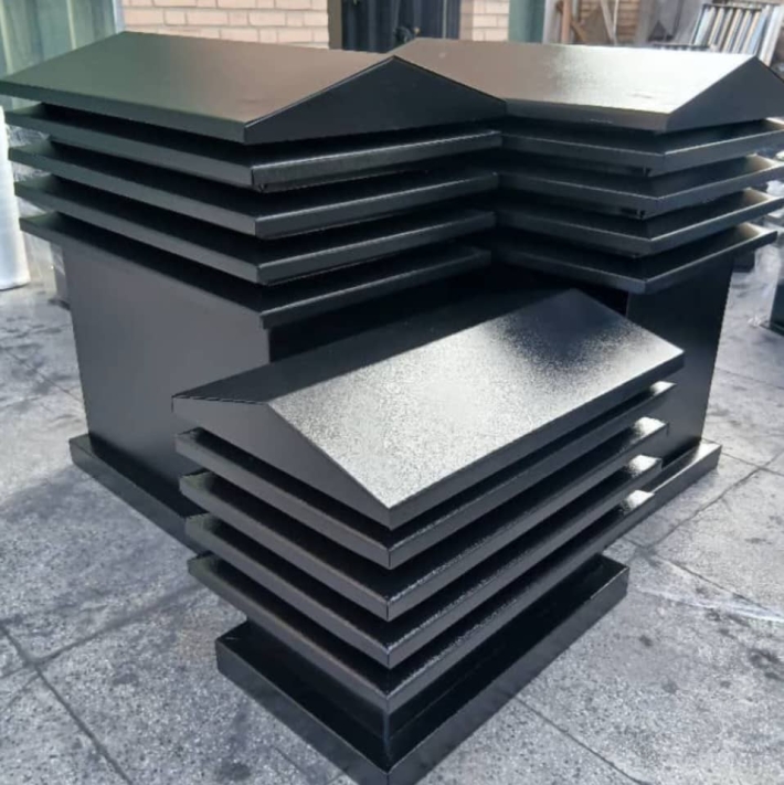 تولید انواع کلاهک پشت بامی از جنس آهن و رنگ الکترواستاتیک مشکی ساخت در ابعاد مختلف