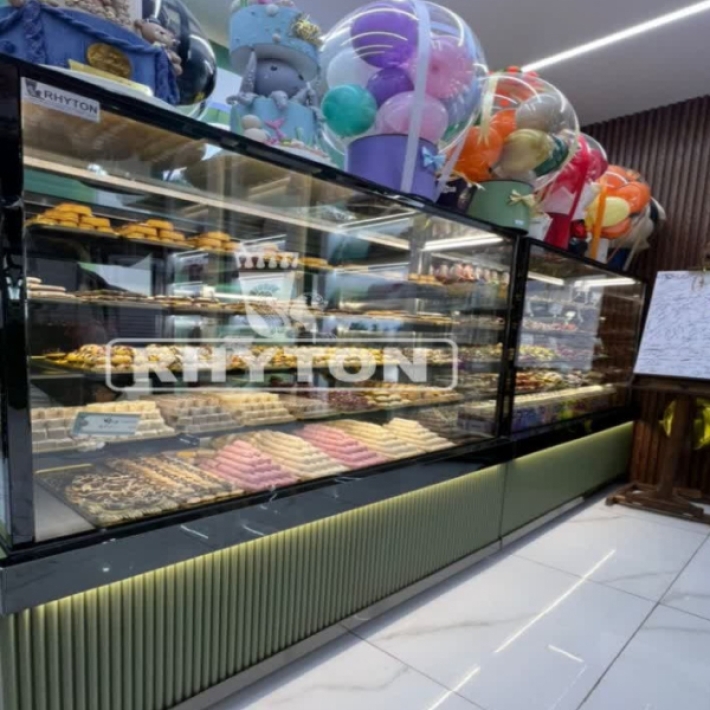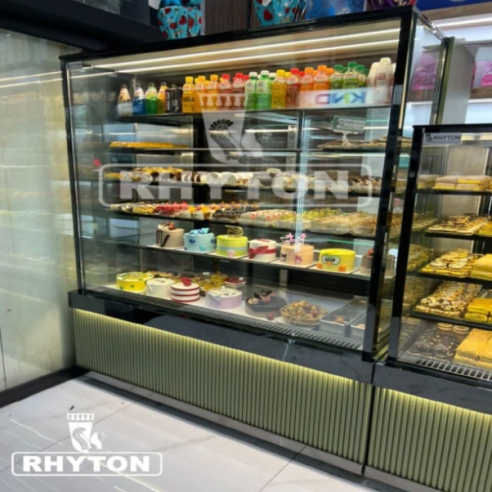 یخچال قنادی نسل جدید ریتون شاپ، تلفیقی از زیبایی بصری و عملکرد سرمایشی دقیق است. طراحی مکعبی با شیشه‌های شفاف و نورپردازی LED، جلوه‌ای هنرمندانه به ویترین شیرینی‌فروشی شما می‌بخشد. این یخچال با سیستم سرمایش هوشمند، دمای یکنواختی را در تمام طبقات حفظ می‌کند تا شیرینی‌ها تازه و خوش‌طعم باقی بمانند.